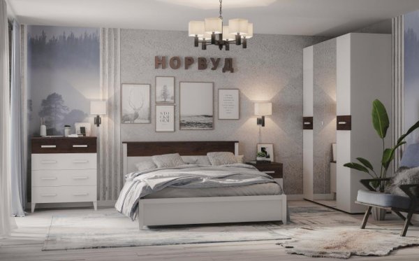 Комод Норвуд идеально подходит для хранения постельного белья и одежды для сна, а если его дополнить Зеркалом навесным Норвуд 7 – он сможет одновременно выполнять функции туалетного столика. Столешница толщиной 22 мм и фасад верхнего ящика в декоре Орех Шоколадный контрастируют с белым декором модуля. Четыре выдвижных ящика на направляющих полного выдвижения глубиной 350 мм открываются/закрываются легко и плавно. Ножки со скосом значительно облегчат процесс уборки в спальне.