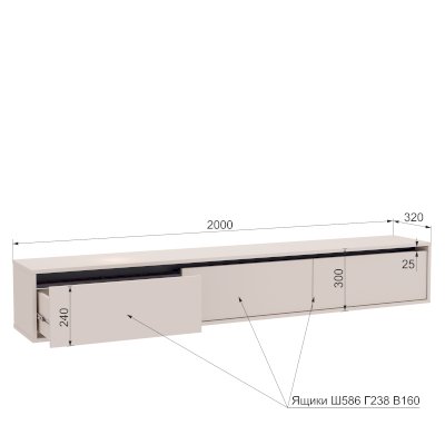 Длина ниши под телевизор, см 200