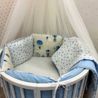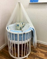 • Комплект простыней на 2 матраса (круглый и овальный: для 2-х трансформаций детской кроватки Dreams).