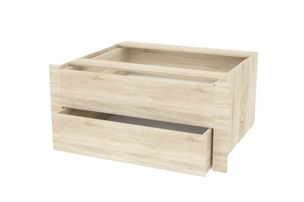 Шкаф можно дополнить встраиваемым модулем с выдвижными ящиками. Модуль устанавливается на любом уровне и в любой секции, но рекомендуемое место размещение - нижняя секция отделения с полками.