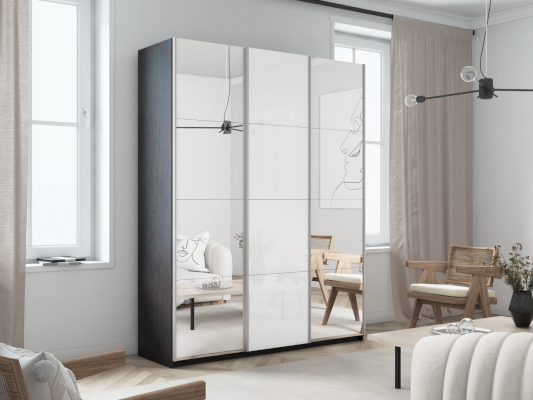 Шкаф-купе 3-х дверный Прайм Зеркало/Белое стекло/Зеркало 1800х2300х570 мм