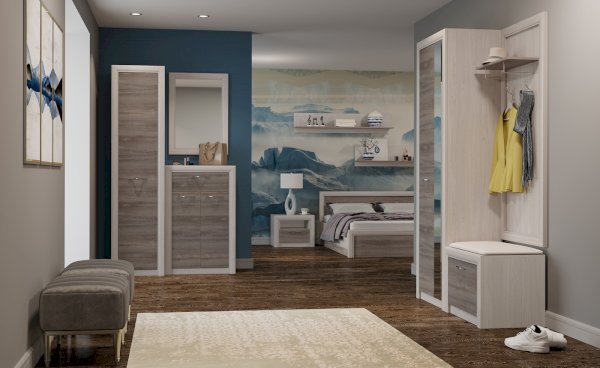 Модульная прихожая Октава Ясень Анкор/Дуб Клабхаус серый (Памир)