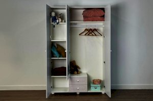 Милана Шкаф трёхдверный — вместительное и продуманное решение для хранения одежды и вещей в детской комнате. Модуль сочетает функциональность, удобную организацию внутреннего пространства и аккуратный современный внешний вид.