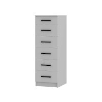 Комод «Фьюжн» КМ-04 – это современное решение для вашего интерьера. Модель оснащена шестью вместительными ящиками, в которых можно хранить белье, аксессуары, книги и важные мелочи. Узкая вертикальная конструкция позволяет сэкономить пространство.