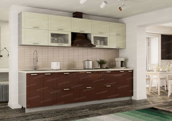 Модульный кухонный гарнитур Нова крем-брюле + горький шоколад глянец (Террикон)