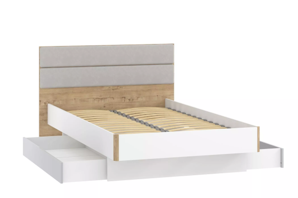 Благодаря приятной на ощупь обивке мягкого изголовья читать перед сном или смотреть фильм будет ещё удобнее. Ортопедическое основание кровати станет огромным преимуществом. Натуральный материал ламелей не вызывает аллергии и безопасен для здоровья. Основание кровати оснащено противоударными профилями, которые обеспечивают безопасную эксплуатацию. Для данного модуля также предусмотрены ящики для хранения НМ 041.21Х, которые приобретаются отдельно.