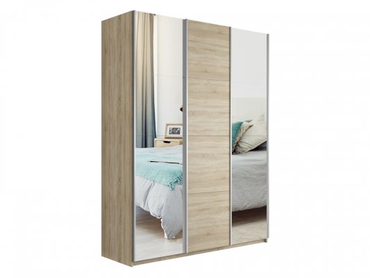 Шкаф-купе 3-х дверный Прайм Зеркало/ДСП/Зеркало 1800х2300х570 мм