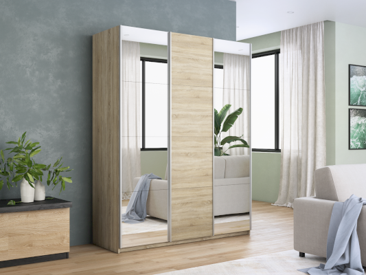 Шкаф-купе 3-х дверный Прайм Зеркало/ДСП/Зеркало (Е1)