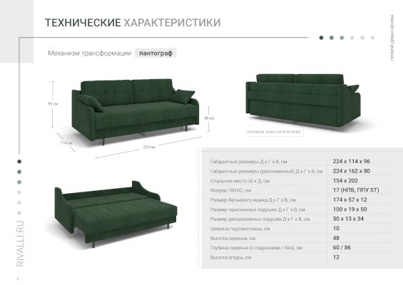 Прямой диван Женева (Rivalli)