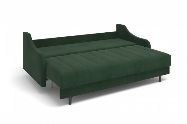 Диван Женева выполнен в модном стиле mid century. Отличительной особенностью модели являются фигурные подлокотники, которые в сочетании с минимализмом прямых форм сиденья и спинки, создают целостный современный образ. Высокие опоры придают дивану легкости и облегчают процесс уборки: клиренс 10 см позволяет свободно маневрировать роботу-пылесосу. Дополнительное преимущество - задняя спинка в основной ткани, что дает возможность размещать диван не только у стены, но и в любом месте помещения. Особую прочность дивану придает металлический каркас из конструкционной стали, а простой и надежный механизм трансформации - пантограф - обеспечивает долгий срок службы.