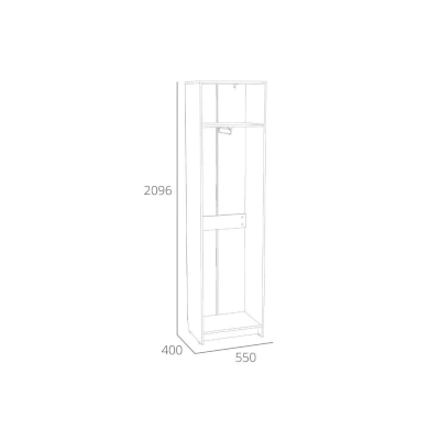 Шкаф оснащен выдвижной штангой, на которую удобно повесить верхнюю одежду на вешалках, а также отдельной полкой для размещения головных уборов и прочих вещей. Шкаф может быть собран как на правую, так и на левую стороны. Дополните шкаф тумбой и зеркалом из одноименной коллекции, чтобы оптимизировать место хранения в прихожей и создать особо гармоничную атмосферу!