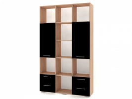 Применение задней стенки из ЛДСП (в ячейках с ящиками и фасадами) позволяет использовать данный стеллаж для зонирования пространства (чтобы предотвратить опрокидывание, необходимо обеспечить крепление стеллажа к стене).