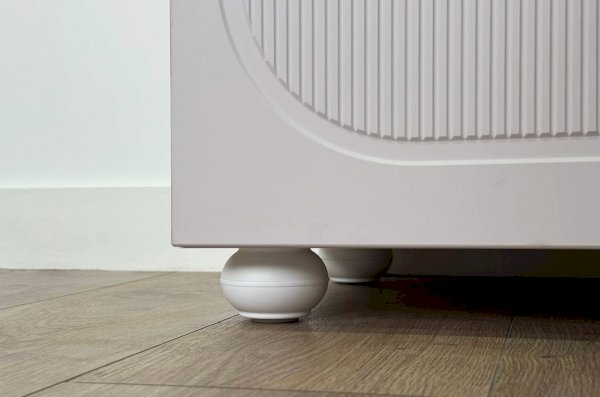 Корпус выполнен из ЛДСП толщиной 16 мм, фасады изготовлены из МДФ в плёнке ПВХ и украшены фрезеровкой, которая придаёт мебели выразительность и подчёркивает стиль серии Милана. Оригинальные круглые ручки и опоры дополняют дизайн, делая тумбу визуально лёгкой и современной.